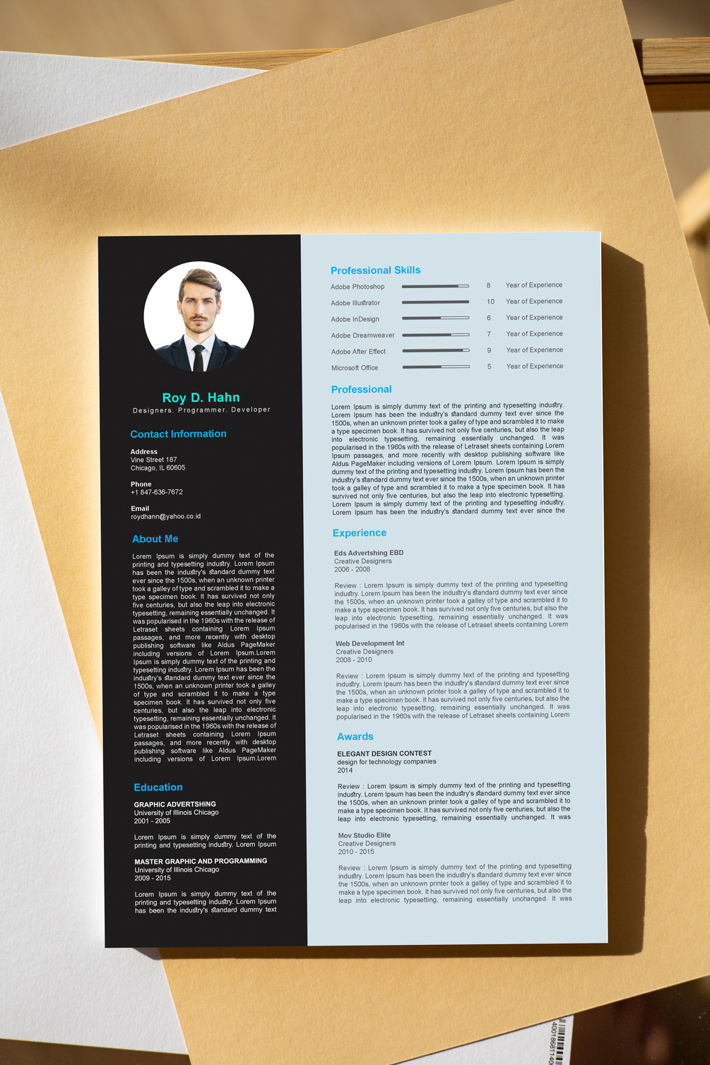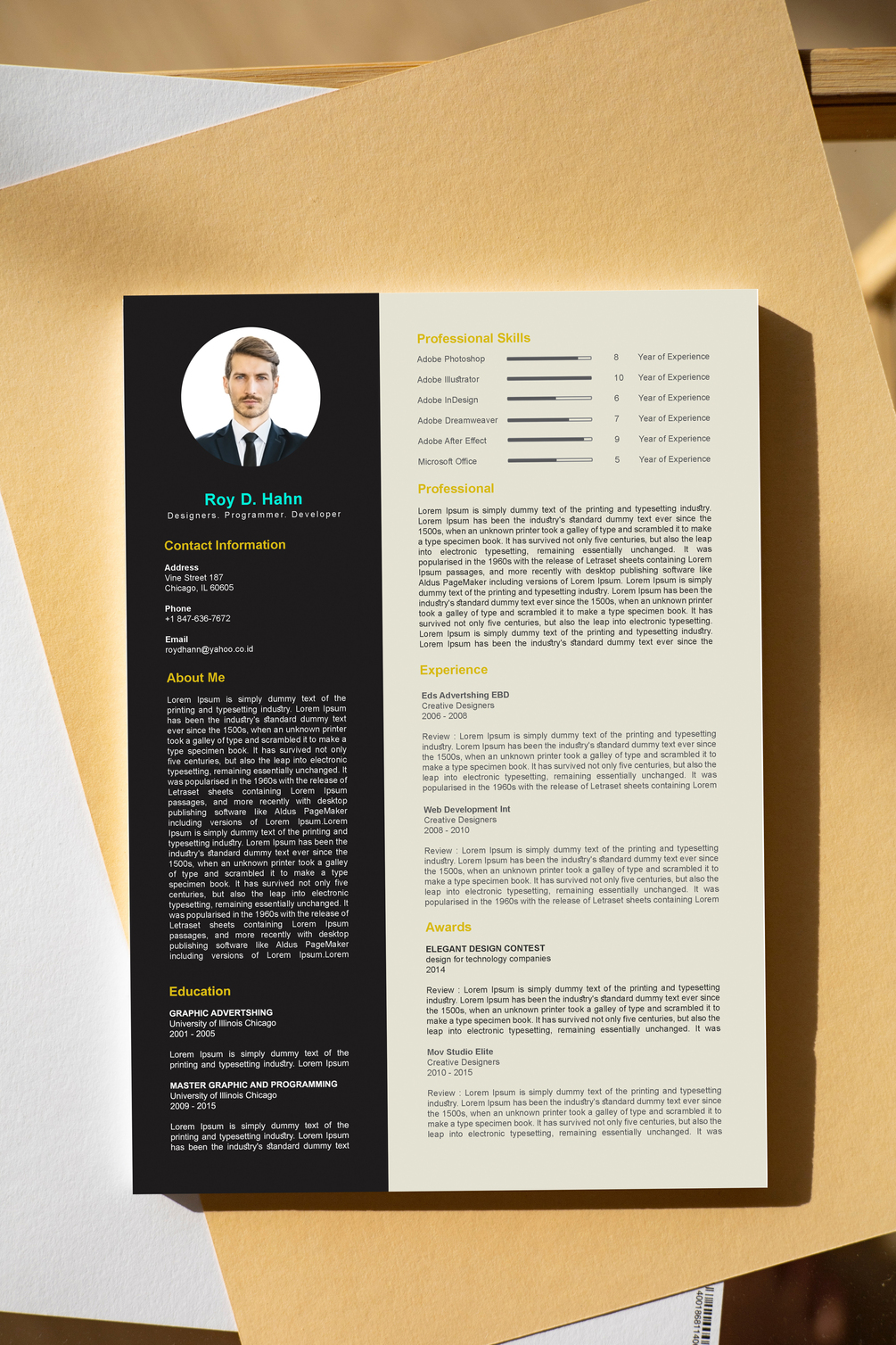 Professional Resume or CV Cover Letter with High Quality Design, Editable File with Smart Object