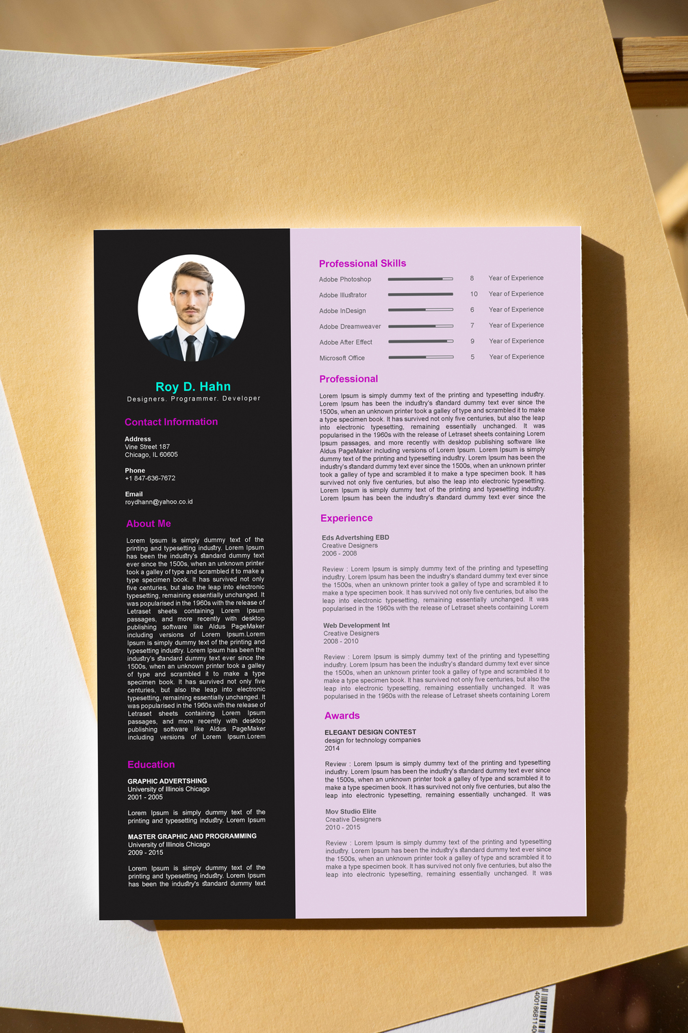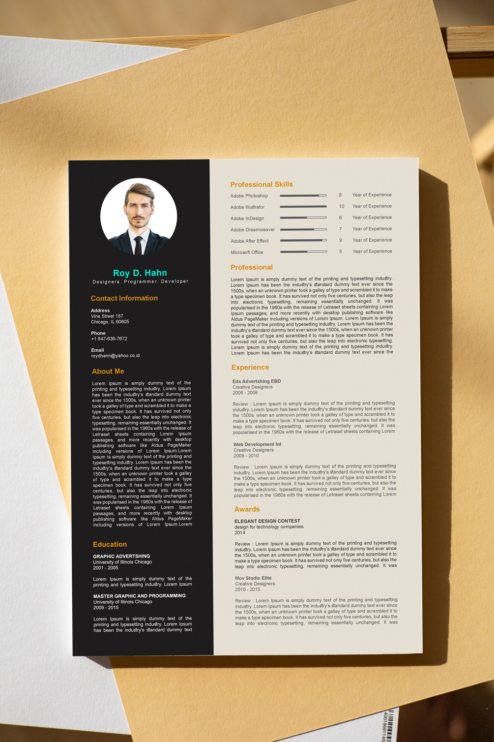 Professional Resume or CV Cover Letter with High Quality Design, Editable File with Smart Object
