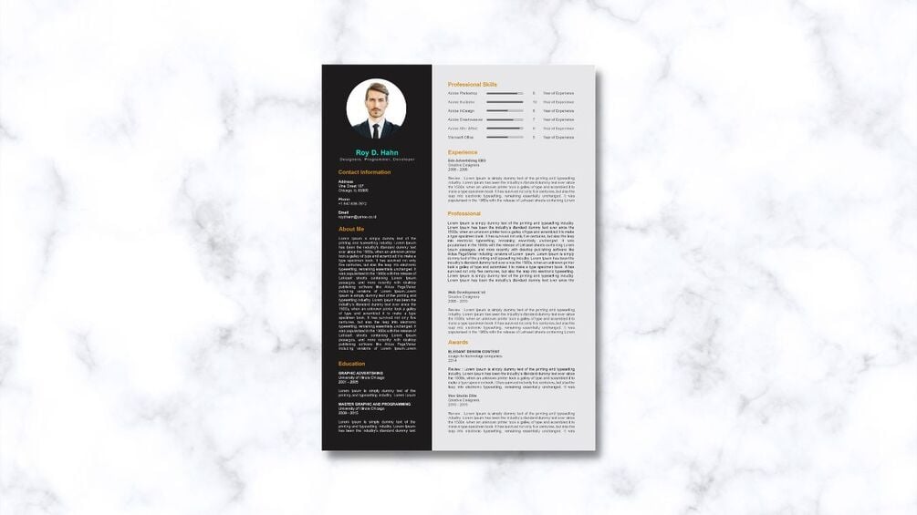 Professional Resume Template in 6 Different Colors Variations